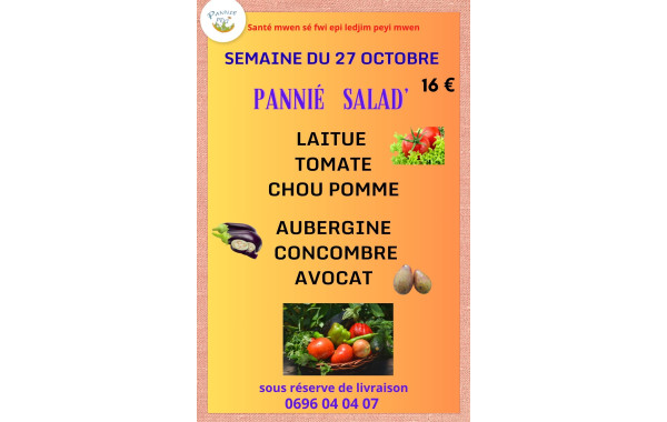 Supprimer du panier Liste de souhaits Pack Aperçu Ajouter au panier Comparer Panier Salade NOS PANIERS Prix 16,00 € Ce "pannié SALAD'" comprend : 3 crudités 3 légumes verts Tous nos paniers sont garnis de produits locaux et de saison....