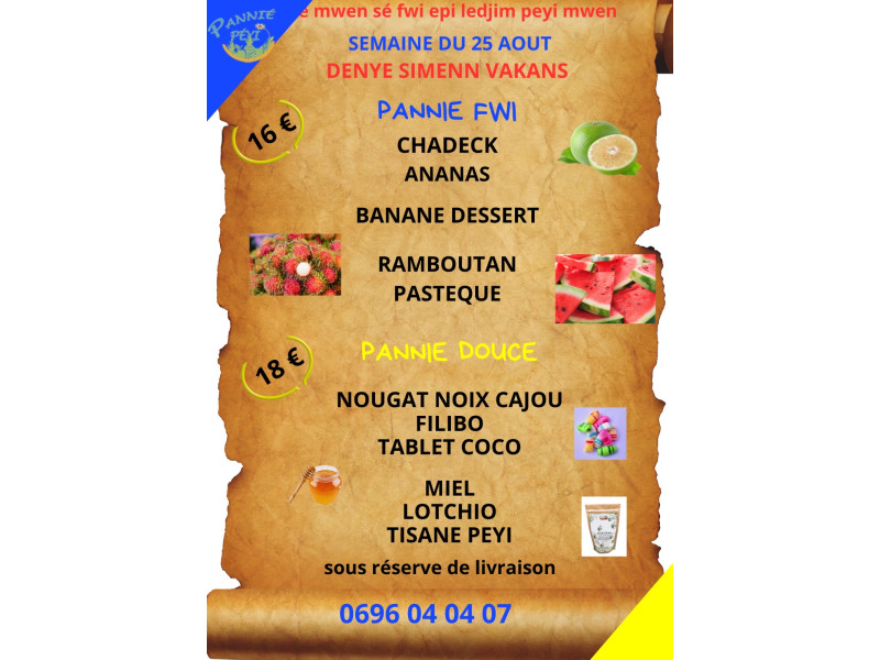 Pannié Péyi livre gratuitement en Martinique les mardis, mercredis et jeudi. Pour le click & collect les mercredis et jeudis.